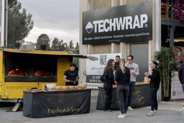 Un cocktail dînatoire offert par Atmosphère Green et animé par L'Atelier de la Socca, en présence de près de 150 personnes, dirigeants des enseignes de design et du bâtiment, ainsi que des architectes.